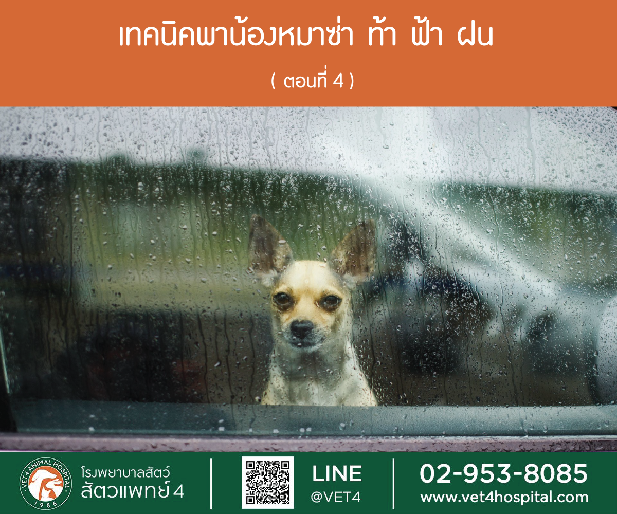 มาจัดปาร์ตี้กันตอนฝนตกดีกว่าครับ ในเมื่อเราห้ามฝนไม่ให้ตกหรือห้ามฟ้าไม่ให้ร้องไม่ได้ ก็ต้องเปลี่ยนมาสร้างความคิดด้านบวกให้กับสุนัขในช่วงที่เกิดฝนตกฟ้าร้องแทน เมื่อพายุฝนทำท่าจะมาให้เจ้าของพาสุนัขเข้าไปในเข้าไปในห้องที่ปิดหน้าต่างเพื่อลดเสียงฟ้าร้องลงให้มากที่สุด เตรียมของเล่นชิ้นโปรดและอาหารชิ้นพิเศษไว้ให้สุนัขไม่ว่าจะเป็นไส้กรอก ตับ เอาเป็นของที่สุนัขชอบมาก ๆ และปกติไม่ได้กินนะครับ ทำกิจกรรม เล่นกับสุนัขและให้สุนัขทานอาหาร โดยให้เจ้าของพยายามทำตัวให้ดูเป็นปกติเหมือนไม่มีอะไรเกิดขึ้น หากสุนัขยอมกินอาหารยอมเล่นแสดงว่าเราได้สร้างความคิดด้านบวกของการเกิดเสียงฟ้าร้องกับการได้กินอาหารมือพิเศษสำเร็จ หากไม่ได้ผลและสุนัขดูตื่นกลัวเราอาจปรับมาใช้การจำลองเสียงฟ้าร้องแทน โดยฝึกในช่วงเวลาปกติที่ฝนไม่ตก เปิดเสียงฟ้าร้องในระดับเบา ๆ ที่สุนัขไม่มีอาการตื่นกลัวและยอมกินอาหารเป็นปกติ ค่อย ๆ เพิ่มระดับเสียงให้มากขึ้นทีละน้อยในวันถัด ๆ