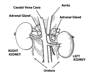 รูปแสดงตำแหน่งของต่อมหมวกไตในสุนัข